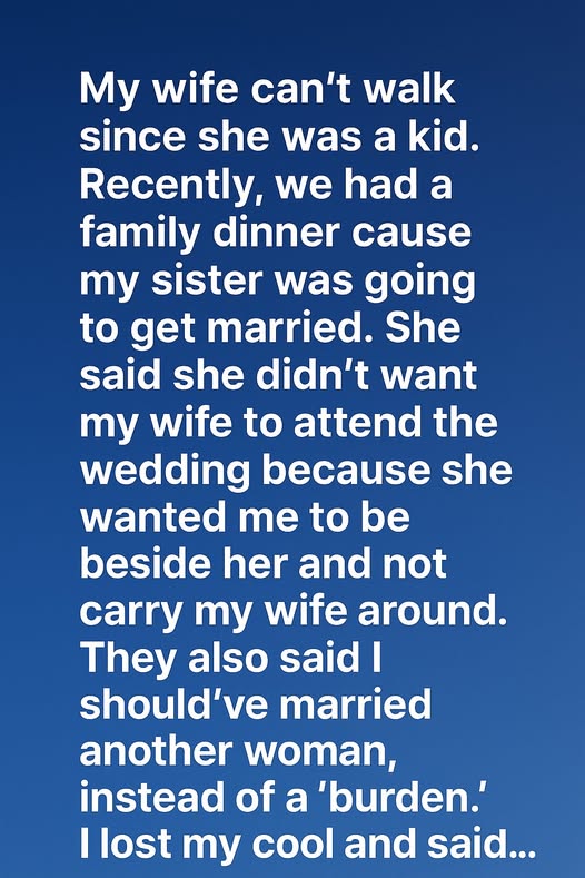 When you marry someone, you make a promise to stand by them, through good times and bad. I never imagined that promise would be tested by my own family. At a dinner celebrating my sister’s engagement, she casually dropped a bombshell: my wife, Emily, was not invited to the wedding. Emily, who has used a wheelchair her entire life, is the most capable and independent person I know. My sister’s excuse—that she needed me “available” and not “distracted” by my wife—was not only insulting but revealed a deep misunderstanding of our partnership.