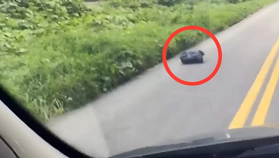 A simple car journey became a rescue mission for a couple who witnessed an unthinkable act of animal abandonment. While driving on a quiet road,